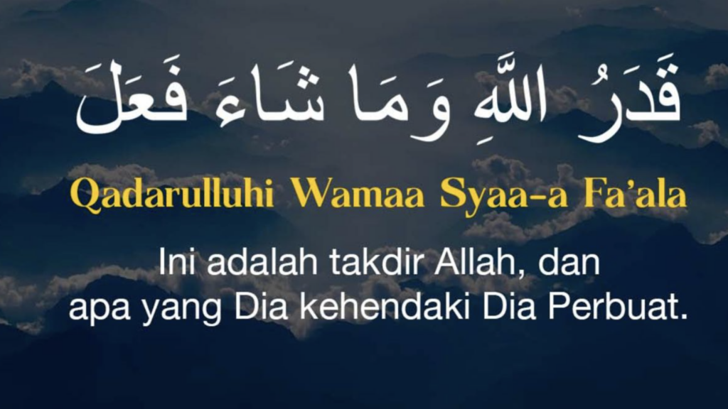Terkait dengan kalimat doa “Qadarullah wa maa syaa-a fa’ala” atau “Qadarulluhi Wamaa Syaa-a Fa’ala”, kalimat tersebut memiliki arti “Ini adalah takdir Allah, dan apa yang Dia kehendaki Dia perbuat”. Kalimat ini diucapkan ketika seseorang mengalami sesuatu yang tidak diinginkan.