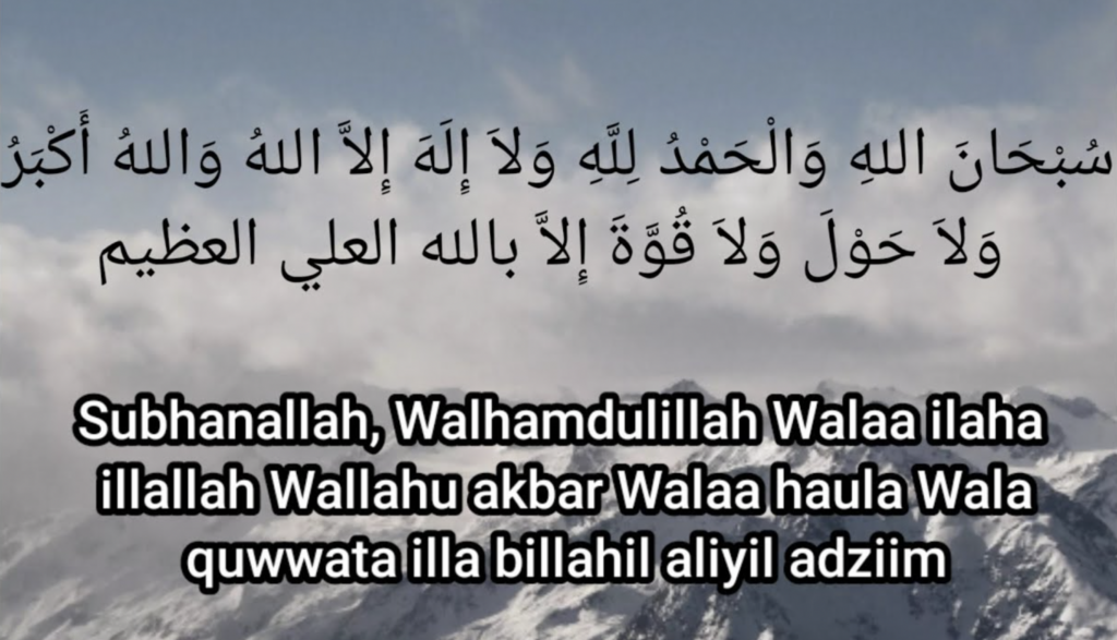 “Dari Abdullah bin ‘Amr, Rasulullah shallallahu ‘alaihi wa sallam bersabda, ‘Tidak ada seorang pun di muka bumi ini yang mengucapkan: Laa ilaha illallah, wallahu akbar, subhanallah, wal hamdulillah, wa laa hawla wa laa quwwata illa billah, kecuali dosa-dosanya akan dihapuskan, meskipun dosanya sebanyak buih di lautan.'”